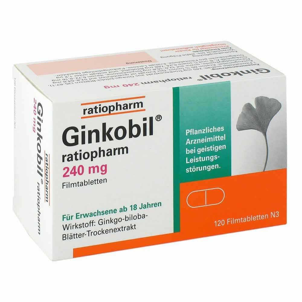 GINKOBIL ratiopharm 240mg (pack size: 120 pcs) contains a dry extract from the leaves of the ginkgo tree and is traditionally used for age-related performance disorders. GINKOBIL ratiopharm 240mg (pack size: 120 pcs) promotes the flow properties of the blood, the uptake of oxygen in the brain and strengthens the nerve cells. GINKOBIL ratiopharm 240mg (pack size: 120 pieces) thus increases performance and protects against age-related deterioration in performance.