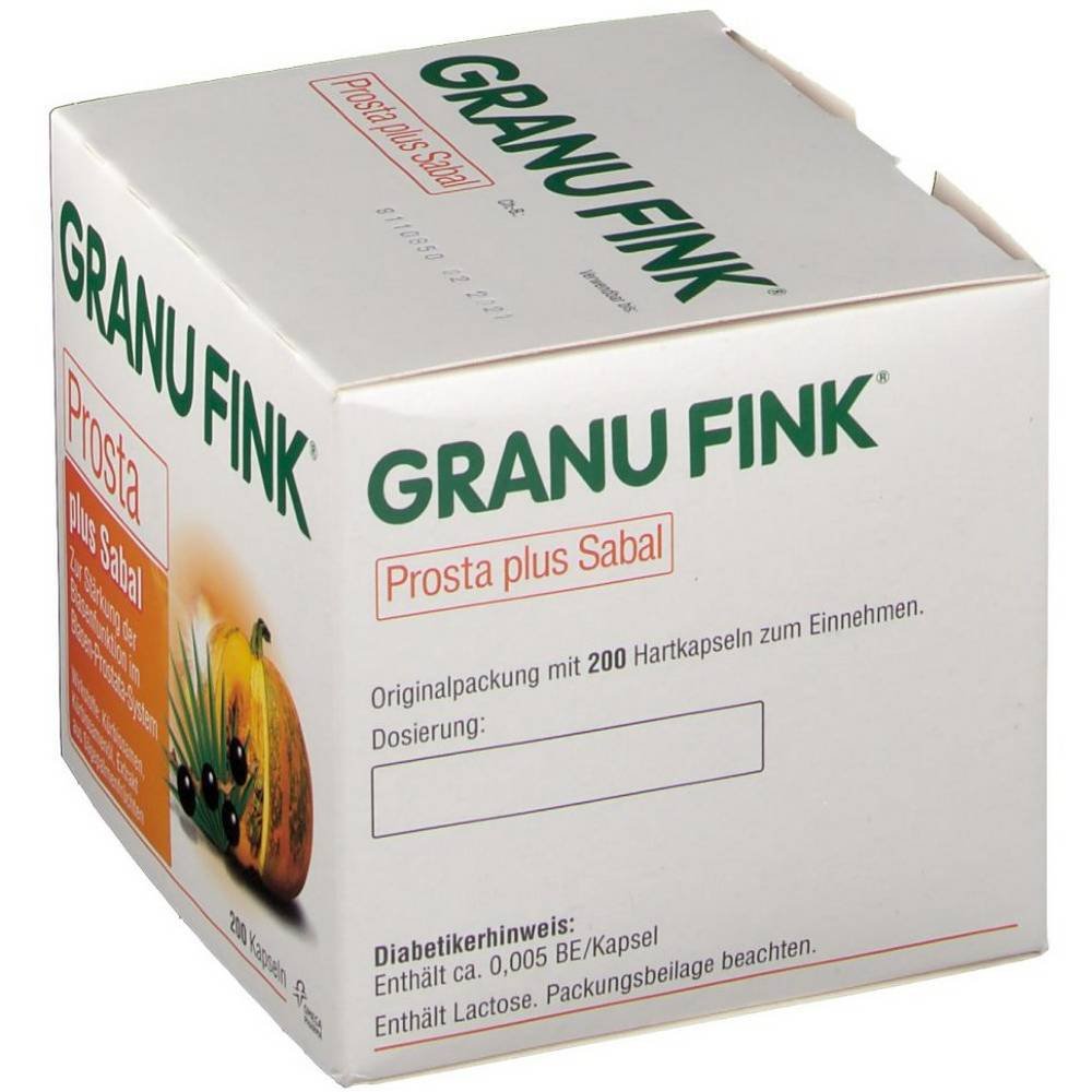 GRANU FINK Prosta plus Sabal. Anwendungsbereiche: Wird traditionell zur Verstärkung oder Stärkung der Blasenfunktion verwendet. Diese Informationen basieren ausschließlich auf Tradition und jahrelanger Erfahrung. Bei Auftreten von Anzeichen der Krankheit, insbesondere plötzlicher Harnverhaltung oder Blut im Urin, sollte ein Arzt konsultiert werden.