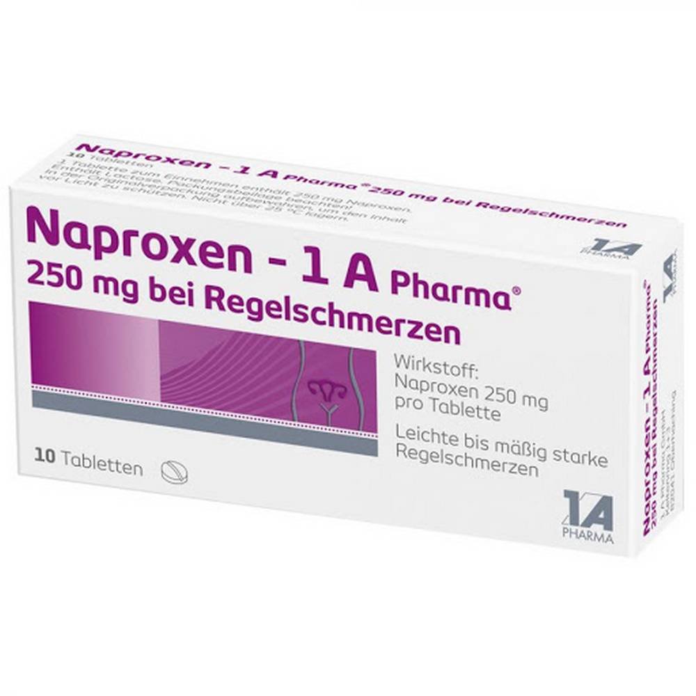 Naproxen – 1 A Pharma ist 250 mg fur Menstruationsbeschwerden. Zutat: Naproxen. Anwendungsbereiche: leicht bis ma?ig stark In der Regel Schmerzen. Enthalt Laktose.